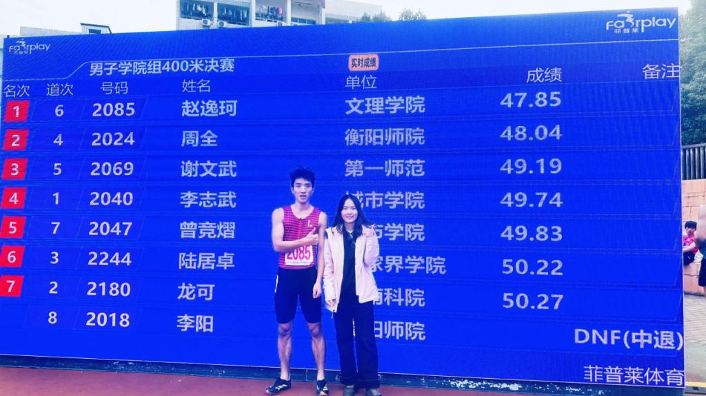 由湖南省教育厅主办的2025年湖南省大学生田径锦标赛于10月26日-11月1日在湖南科技大学举行,来自省内的98所高校约1600余人参加比赛。其中学院组有21所高校的代表队参赛,我校代表队参加的是学院组的比赛。
