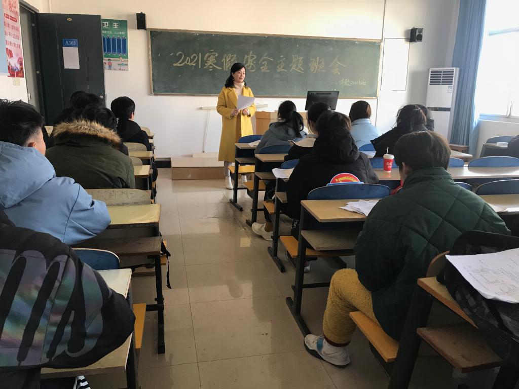 二、做好学生安全教育与诚信考试主题教育工作。2021年元旦期间,组织开展学生宿舍走访、困难学生关怀及少数民族学生关爱工作;在2021年寒假放假前,辅导员、班主任要主持召开主题班会,做到“明考纪,严考风,零作弊”, 签订《诚信考试承诺书》,布置放假和下学期开学相关事项。辅导员、班主任要亲自讲解寒假前后安全注意事项,进行安全教育。要重点就消防安全、交通安全、食品安全、人身财产安全等进行教育,教育学生防范电信诈骗、校园贷、传销。