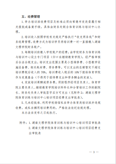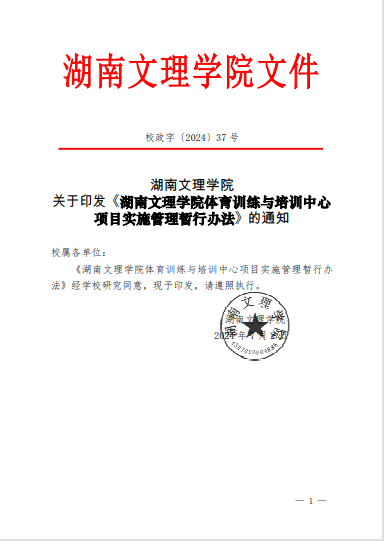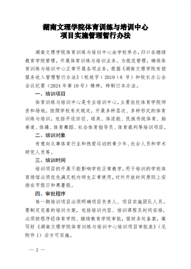 湖南文理学院体育学院体育训练与培训中 心项目实施管理暂行办法