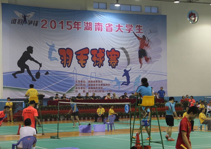 2015年5月18日至21日,湖南省大学生羽毛球比赛在湖南城市学院举行。比赛分为大学组、学院组、高职专科组。设有男团、女团、男单、女单、男双、女双、混双七个项目。