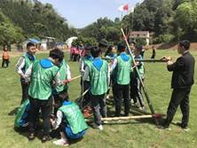 16号上午从学校出发到巴家营地,他们首先进行了一天的实践学习,包括帐篷搭建、户外绳结术等户外实用知识的学习,还学了嘎嘎球、旱地冰球、竹竿舞、罗马大战等户外游戏。