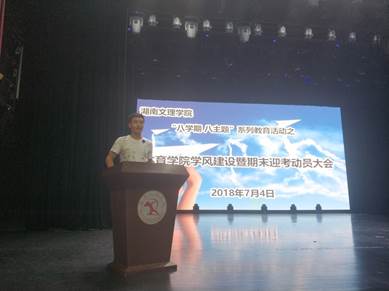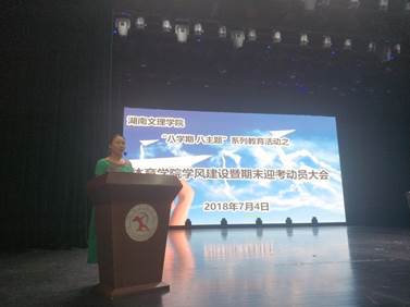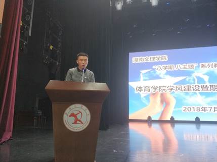 2018年7月4日晚7点,我院在艺术中心召开学风建设暨期末迎考动员大会。体育学院全体领导班子、全体班主任及全院学生参加本次会议。