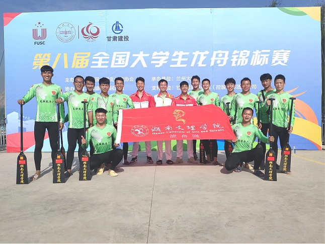 2019年9月5日至9日,由中国大学生体育协会主办,兰州大学承办的2019年第八届全国大学生龙舟锦标赛在甘肃省临夏州永靖县黄河三峡太极岛举行。来自北京大学、浙江大学、浙江海洋大学、聊城大学、青岛大学、湖南文理学院、天津师范大学、江汉大学、长江大学等国内高校20余支高水平龙舟队的170余名龙舟健儿参赛。 经过五轮激烈角逐,我校男子龙舟队作为湖南省唯一一支参赛的高校龙舟队,面对985、211高校等国内顶尖高校龙舟队,获得了男子组100米、200米、500米直道竞速三项亚军奖杯,“体育道德风尚奖”,队长姜鑫同学被授予“精神文明运动员”称号,取得了龙舟队建队以来最佳成绩。