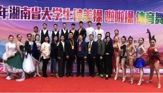 由湖南省教育厅主办,湖南科技大学承办的2019年湖南省大学生健美操啦啦操体育舞蹈比赛于11月16日至11月19日在湖南科技大学第一体育馆举行。湖南省教育厅副厅长唐亚武、湖南省教育厅体卫处处长彭四龙、湖南省学生体育协会副主席周文、湖南省教育厅体卫处调研员金彪参加开幕式。