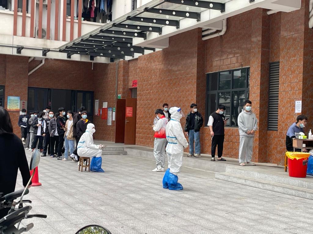 湖南文理学院积极配合防疫工作,为保障师生的健康安全,我校自11月15日实行封校管理以来,在一田进行了多次核酸采样,结果均为阴性。11月21日起,为提高效率、减少人群交集,学校安排志愿者在学生宿舍楼下进行核酸采样。
