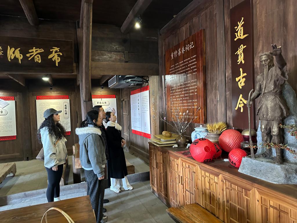 随后,大家走进善卷文化陈列馆与善卷书院,在讲解员的细致引导下,深入了解善卷 “布善德、启民智” 的上古传说,感悟其 “以文化人、美德成风” 的治国理念,沉浸式感受这一湖南省非物质文化遗产的深厚底蕴。从《庄子》《吕氏春秋》中的典籍记载,到 “帝者师” 的历史赞誉,再到 “常德德山山有德” 的民间谚语,大家驻足于展板与雕像前,认真聆听、交流感悟,在文化浸润中涵养崇德向善的家国情怀,进一步增强文化自信。