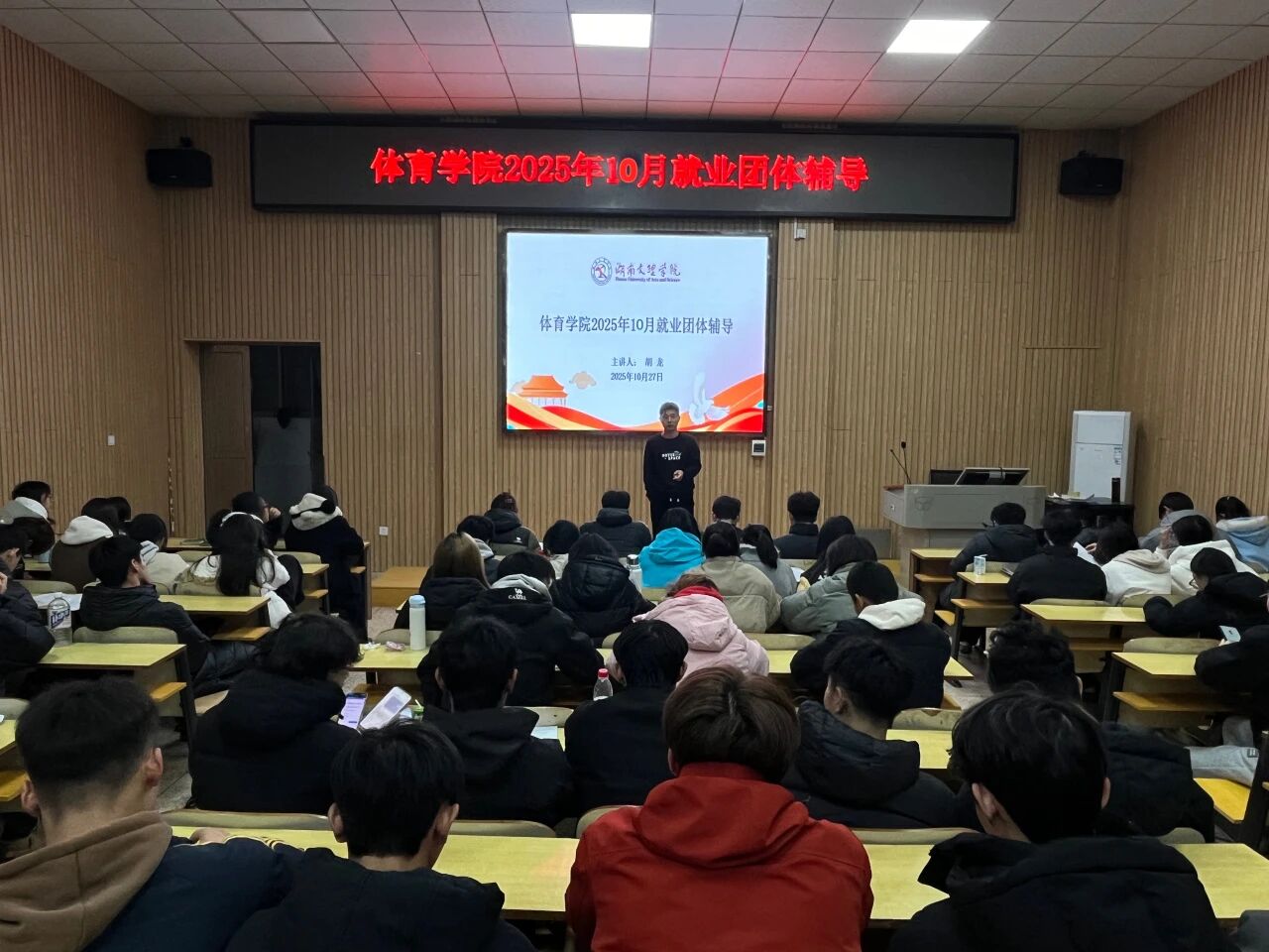 为帮助体育学院各学子打破信息差、避开求职误区,精准锚定适配赛道。2025年10月14日在体育学院A123阶梯教室开展10月就业团体辅导。此次辅导由体育学院学工办主任胡龙老师主讲,参与辅导学生为2022级全体学生。
