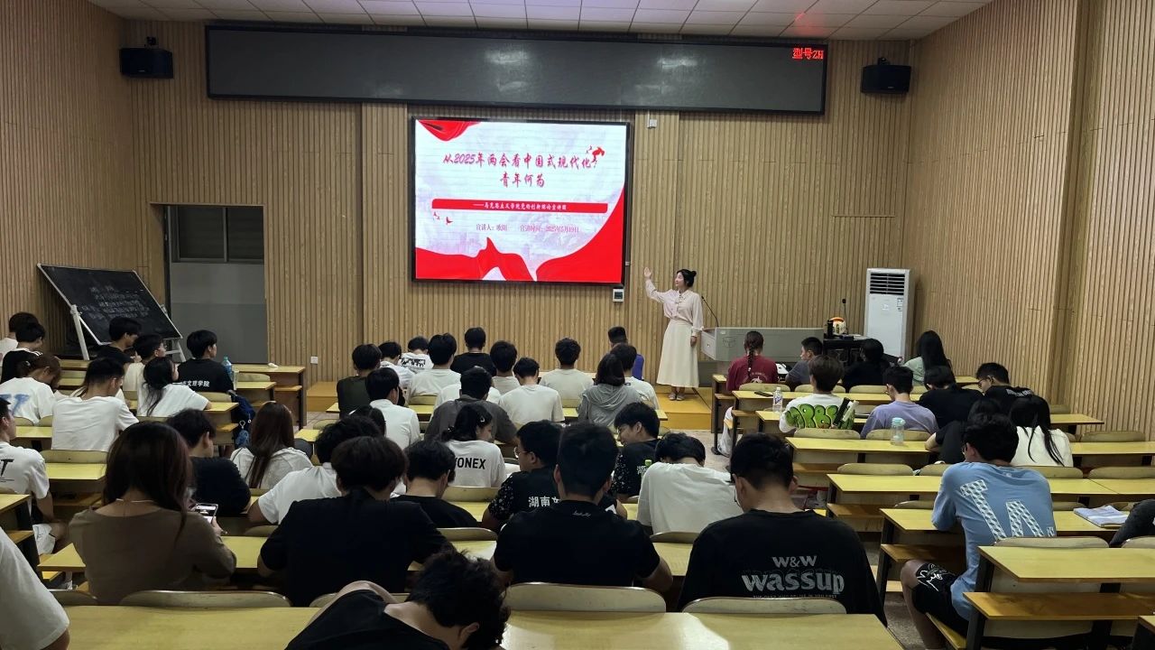 (图文杨采琴)为了帮助体育学院的学生们更好地理解2025年两会精神,明晰中国式现代化进程中青年的责任与担当,我院特别开展“从2025年两会看中国式现代化:青年何为?”主题宣讲会。此次宣讲会由湖南文理学院创新理论宣讲团成员马克思主义学院欧阳同学主持,体育学院入党积极分子和预备党员全体参加。