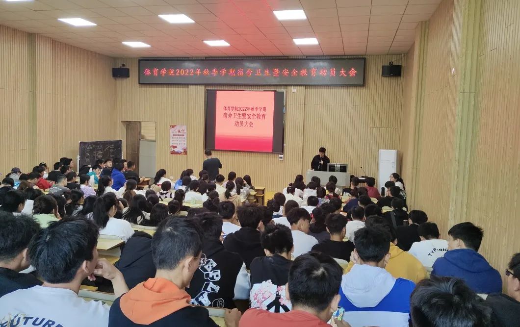 为充分学习领会习近平总书记在全国教育大会、教育文化卫生体育领域专家代表座谈会上的重要讲话精神,配合推进我校校园文明建设工作,打造安全、文明、整洁的宿舍环境,提高学生安全意识,体育学院于10月14日下午13:30在体院A123举行了秋季学期2022年宿舍卫生暨安全教育动员大会。